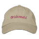 Gorra de béisbol ajustable básica de ropa alternativa con bordado personalizado en color caqui con tipografía de texto "Bridesmaid" en rosa y diseño gráfico digital de TheFabricSeal en tienda de impresión bajo demanda en Zazzle.com #ZazzleMade https://www.zazzle.com/store/thefabricseal TheFabricSeal Original.