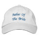 Gorras de béisbol ajustables básicas de ropa alternativa bordadas a mano en blanco con "Padre de la Novia" en tipografía de texto azul marino y diseño gráfico digital de TheFabricSeal, impresas bajo demanda en la tienda de Zazzle.com #ZazzleMade https://www.zazzle.com/store/thefabricseal TheFabricSeal Original.