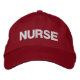 Muestra tu estilo y moda usando este gorro de béisbol con pechos de malestar. Es un minimalista moderno diseñado con la palabra "enfermera" en negrita blanca alta funda en el centro. Puede elegir entre una variedad de opciones de color disponibles distintas del gorra rojo burdeos como se muestra. ¡Hace un regalo de enfermera genial!