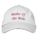 Gorras de béisbol ajustables básicas de ropa alternativa con bordado personalizado en blanco con "Madre de la Novia" en texto tipográfico rosa y diseño gráfico digital de TheFabricSeal, tienda de impresión bajo demanda en Zazzle.com #ZazzleMade https://www.zazzle.com/store/thefabricseal TheFabricSeal©️Original.
