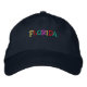 Deporte una cubierta atractiva fresca y divertida para su cúpula. Nuestro diseño de costura multicolor Florida se adapta a cualquier tapa amigable para bordados que desee. Todos los gorras son unisex, independientemente del sexo del modelo. Después de elegir su estilo y color favorito, también puede cambiar el tipo de letra, el tamaño y el color de las letras, y la posición. ¡Haz clic en "Personalizar" y váyanse!