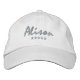 Nombre de Alison bordado con letras de color rosa suave de bonito para tu mujer o chica favorita llamada Alison. Acondicionado con 5 estrellas de flores a juego.