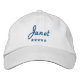 Nombre de Janet bordado en azul en California en un tipo de letra informal para tu mujer o chica favorita llamada Janet. Acondicionado con 5 estrellas a juego.