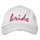 Gorra de Novia Blanca con la palabra "novia" en bordado rosa. El gorra de la dama de honor también está disponible en la tienda.
