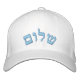 "Shalom" (paz) bordado en letras hebreas, personalizable completamente a tu propio texto y colores con el botón "¡Personalizar!".