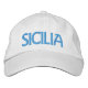 White baseball cap with SICILIA or SICILY in blue embroidery. Italian heritage gift, Italy pride hat, Italian baseball cap, gift for Italian family, Italian American gift, Italy travel hat, Italian pride apparel.