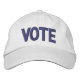 Votación, texto azul Tapa de béisbol bordado en blanco. Disponible en muchos colores