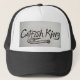 Aquí está el gorra de un camionero con un REY del diseño y del SILURO del gancho en el frente.