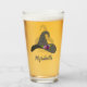 Crea un regalo personalizado con un toque de brujería y un toque de Halloween. Esta bolsa de cristal de pub o de cristal de pinta presenta el ilustracion del gorra de una bruja en gris carbón y negro decorado con flores en morado, magenta y lavanda. Está listo para ser personalizado con un nombre debajo en letras de guiones.