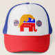 peluca naranja sobre elefantes rojos, blancos y azules y nunca trompa botones A personalizar
