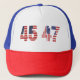 Apoya a Donald Trump en las elecciones de 2024 con esta elegante gorra de camionero que presenta el audaz diseño '45 47'. Muestra tu espíritu patriótico con esta llamativa gorra que destaca la 45ª y potencial 47ª presidencia de Trump, adornada con la bandera estadounidense. Perfecta para mítines, eventos políticos o uso diario, esta gorra de alta calidad hace una declaración y te mantiene cómodo.