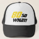 80 y qué - gorra de cumpleaños personalizable y divertido. Una gran idea de regalo de cumpleaños para un hombre o mujer positivo que celebra su cumpleaños número 80 y tiene sentido del humor. El texto dice 80 Así que qué - se puede cambiar el número de edad. El texto está en amarillo y negro. Gran regalo para una mujer o un hombre de 80 años.