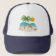Gorra De Camionero Amanecer Y Perro De Higgys Blanco En Una Playa Tro