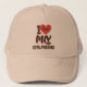 Me encanta el sombrero de camionero personalizado de mi novia de dulce y animado tipo de letra que dice "Amo a mi novia" y un corazón gigante y colores claros