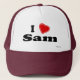 ¡Amo a Sam! ¿Es su nombre Sam? ¿Usted tiene una esposa, una novia, un miembro de la familia femenino o un amigo femenino que usted sepa amores usted? ¿O usted tiene un marido, un novio, un miembro de la familia masculino o un varón Sam nombrado amigo que usted ame profundamente? ¡Si es así éste "que amo" el gorra es exactamente el regalo que usted está buscando! Las características del diseño la letra "yo" en letras negras con un corazón rojo en el top y el "Sam" en letras negras en la parte inferior.