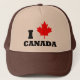 ¡Amo el gorra del camionero de Canadá! ¡Ofreciendo la hoja de arce canadiense roja de A como el corazón en la frase, "amo Canadá"! ¡Gran idea del navidad y del regalo de vacaciones para el canadiense verdadero!
