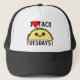 "I Love Taco Tuesdays" (Me encanta el taco martes) amantes del taco sombrero de camionero con un bonito personaje taco al estilo kawaii
