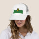 Sombrero camionero con bandera variante de Sajonia; diseño con dos bandas horizontales de verde y blanco, y con el escudo de armas del estado en el centro
