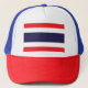 La bandera tailandesa es una banda bicolor horizontal fimbriada. Los colores utilizados en la bandera son azul, rojo, blanco. La proporción de la bandera tailandesa es de 2:3. La bandera de Tailandia fue adoptada en 1917.