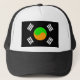 Como la bandera surcoreana real, pero con los colores substituidos por sus contrapartes negativas.