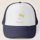 Boné unissex com ilustração digital de páscoa, mostrando partes da figura de um coelho e com escrita "happy easter" abaixo. Ideal para presentear alguém especial ou usar durante a época festiva.