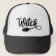 Este diseño en blanco y negro presenta la palabra "Bruja" en un tipo de letra de guión en negrita y fluido, con el extremo posterior de la letra "h" transformándose en el mango de un palo de escoba. El texto está estilizado con un aspecto lúdico y escrito a mano, añadiendo un toque caprichoso al tema general. Alrededor de la palabra hay estrellas dispersas, creando un efecto mágico, estrellado-nocturno que realza el tema brujo. El broomstick, situado diagonalmente bajo el texto, agrega un elemento dinámico al diseño, sugiriendo movimiento y añadiendo profundidad.