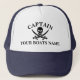 Personalice este gorra que navega temático náutico del cráneo del pirata de la diversión o del capitán de los marineros de la bandera alegre de Rogelio con el nombre de su barco de la vela o de motor y modifique la plantilla del texto para requisitos particulares de los capitanes con otro miembro de su equipo de naves. Modifique el color para requisitos particulares del texto al coordenada con el color de su casquillo.