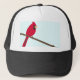 La sentada cardinal roja en un ilustracion de la rama de árbol fijó contra un cielo azul. También puede ser utilizado como mascota de los deportes para la High School secundaria, la universidad o el favorable equipo. ¡Van los cardenales!