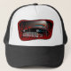 Gorra retro del camionero del Rockabilly con un negro y un azul' 54 Chevy en llamas en una ameba retra. El buitre Kulture® es una marca de la forma de vida creada por el artista metalizado renombrado Dan Statler, diseñador de la producción de garaje del monstruo. El buitre Kulture® representa el alcohol del arte de la frente, del Kustom Kulture, y de la cultura retros, bajos del coche de California.