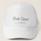 Custom Script Text Name Modern Elegant Simple Template Womens Bride Squad Bridesmaid Wedding Bachelorette White Foam Trucker Hat / Cap.