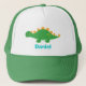 Un gorra con un lindo dinosaurio Stegosaurus verde que tiene picos amarillos para armadura. Ideal para los amantes de los temas prehistóricos, jurásicos o dinosaurios. Personaliza con el nombre o mensaje de la persona.