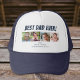 Este divertido gorra del Día del Padre presenta cuatro fotos cuadradas para fotos de niños o papá. El texto azul marino "Mejor Papá Nunca" aparece encima de las fotos. El texto personalizado le permite personalizar con los nombres.