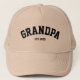 Este abuelo personalizado "Este. Gorra de año es el regalo perfecto para celebrar a un abuelo nuevo o experimentado! Con un diseño clásico y estructurado, con letras negras en negrita y un estilo colegiado, este tapón muestra orgullosamente "GRANDPA" junto con un personalizable "Est". Año" detalle para marcar cuando comenzó el viaje de los abuelos. El color beige neutro lo hace versátil y fácil de usar para las salidas diarias, ya sea para hacer recados, pasar tiempo con los nietos o relajarse al aire libre. Este regalo reflexivo y práctico es perfecto para el Día del Padre, una invitación de embarazo o cualquier hito que celebre la familia. ¡Es un conservador elegante que es tan significativo como funcional!