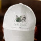 Esta elegante gorra de béisbol para el equipo de novia / dama de honor es de la colección de boda/ shower nupcial gótica irlandesa del día de San Patricio "Hasta que la Muerte Nos Separe". Cuenta con ilustraciones temáticas góticas e irlandesas dibujadas a mano en tinta negra, mostrando una calavera adornada con rosas verdes, hojas, bayas, flores silvestres y tréboles verdes. Todo el texto es editable.