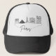Este sombrero de camionero cuenta con un ilustracion de arte de línea de silueta en el horizonte de París.