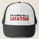 Heche una ojeada esto "que estaría bastante en…" ¡gorra de la malla! ¿Usted falta su ciudad natal? ¿Usted tiene un amigo o un miembro de la familia que estarían bastante en su ciudad natal en vez de donde ahora están? Si es así esto "estaría bastante en…" ¡el gorra de la malla es exactamente el regalo que usted está buscando! Las características del diseño "estaría bastante en" en pequeñas letras en el top y la ubicación en letras rojas grandes en la parte inferior.