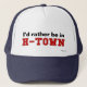 ¡Estaría bastante en H-Ciudad! ¿Es usted de Houston, Tejas? ¿Usted tiene un amigo o un miembro de la familia que amen Houston, Tejas? Si es así esto "estaría bastante en…" ¡el gorra es lo que usted está buscando! Las características del diseño "estaría bastante en" en pequeñas letras negras en el top y la "H-Ciudad" en letras rojas grandes en la parte inferior.