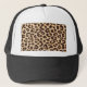 Casquillo negro y blanco del camionero mostrado con la impresión animal del leopardo enrrollado.