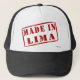 ¡Hecho en Lima! ¿Es usted de Lima, Perú? ¿Usted tiene un amigo o un miembro de la familia que amen Lima, Perú? Si es así éste "hecho en…" ¡el gorra es exactamente el regalo que usted está buscando! Las características del diseño que resistido "hecho en Lima" en rojo plantilla-como letras rodeó por un rectángulo redondeado rojo.