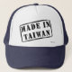 ¡Hecho En Taiwán! ¿Eres de Taiwán? ¿Tienes un amigo o familiar que ama Taiwán? Si es así, esto "se hizo..." ¡gorra es exactamente el regalo que estás buscando! El diseño presenta un "Made in Taiwan" (Hecho en Taiwán) con letras en forma de esténcil negro rodeado por un rectángulo redondeado negro.