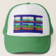 Sombrero de camionero con un diseño azul que combina perfectamente con el borde verde.