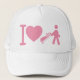 I el corazón golfing o yo ama el golfing del casquillo de la pelota de golf de las mujeres rosadas y blancas. Las características del diseño un golfista rosado que tira de clubs y un corazón rosado y usted pueden cambiar el color del casquillo blanco de la bola también. Hace un gran regalo para una mujer que ame el golfing. Usted puede también añadir un nombre para personalizarlo.