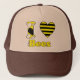 Ik houd van bijen pet. Tekst: I heart Bees. Het hart is met een zwarte en gele strepen. kleuren: geel, zwart en wit. Bij de letter B zijn vleugels van een bij te zien.