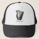 Icono de arpa blanca y negra con decoración de nudo celta. Texto personalizado.