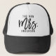 ¡Nuestro sombrero de camionero de novias personalizado hace un lindo regalo de luna de miel para una amiga recién casada! Características de diseño "La nueva señora. [apellido]" en la moderna y moderna tipografía negra. Fácilmente personalizar con el nuevo apellido de la novia usando el campo proporcionado. ¿Prefiere esto para una futura novia? Simplemente cambie "nuevo" por "futuro".