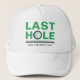 Celebra el último swing del novio antes del anillo con esta gorra de camionero de despedida de soltero con tema de golf verde, negro y blanco. Diseñada con la frase "Último hoyo", este diseño divertido y audaz es perfecto para una salida de golf o fin de semana de soltero. Un gran accesorio para el novio y su grupo, esta gorra añade un toque divertido a la celebración. ¡Personalízala con el nombre del novio para un recuerdo personalizado!
