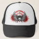 El cráneo de acero de Badass con las alas de la recto-maquinilla de afeitar, casco de cuero y gafas, los "espías consigue puntadas" en letras góticas, y el fondo rojo de la salpicadura. Camisetas y swag del regalo.