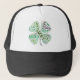 Cuatro siluetas de trébol hoja con "Lucky" en varios tipos de letra y tamaños