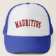 ¡Compruebe hacia fuera este gorra de Mauricio! ¿Es usted de Mauricio? ¿Usted tiene un amigo o un miembro de la familia que amen Mauricio? ¡Si es así este gorra de la "bandera" es exactamente el regalo que usted está buscando! Las características del diseño "Mauricio" en letras rojas arqueadas en la fuente clásica de la universidad.