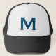 Customizable and personalized Trucker Hat with a simple blue mongram design. Ideal thoughtful gift.